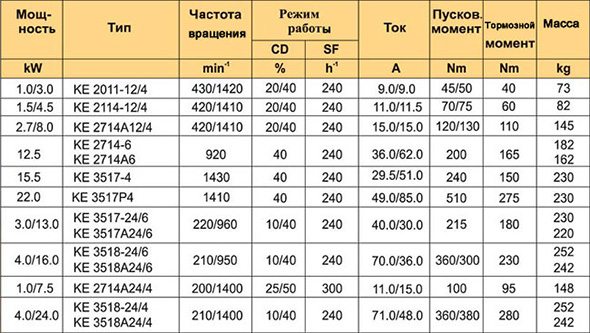 Электродвигатели серии КЕ для главного подъема канатных электротельферов серии MT